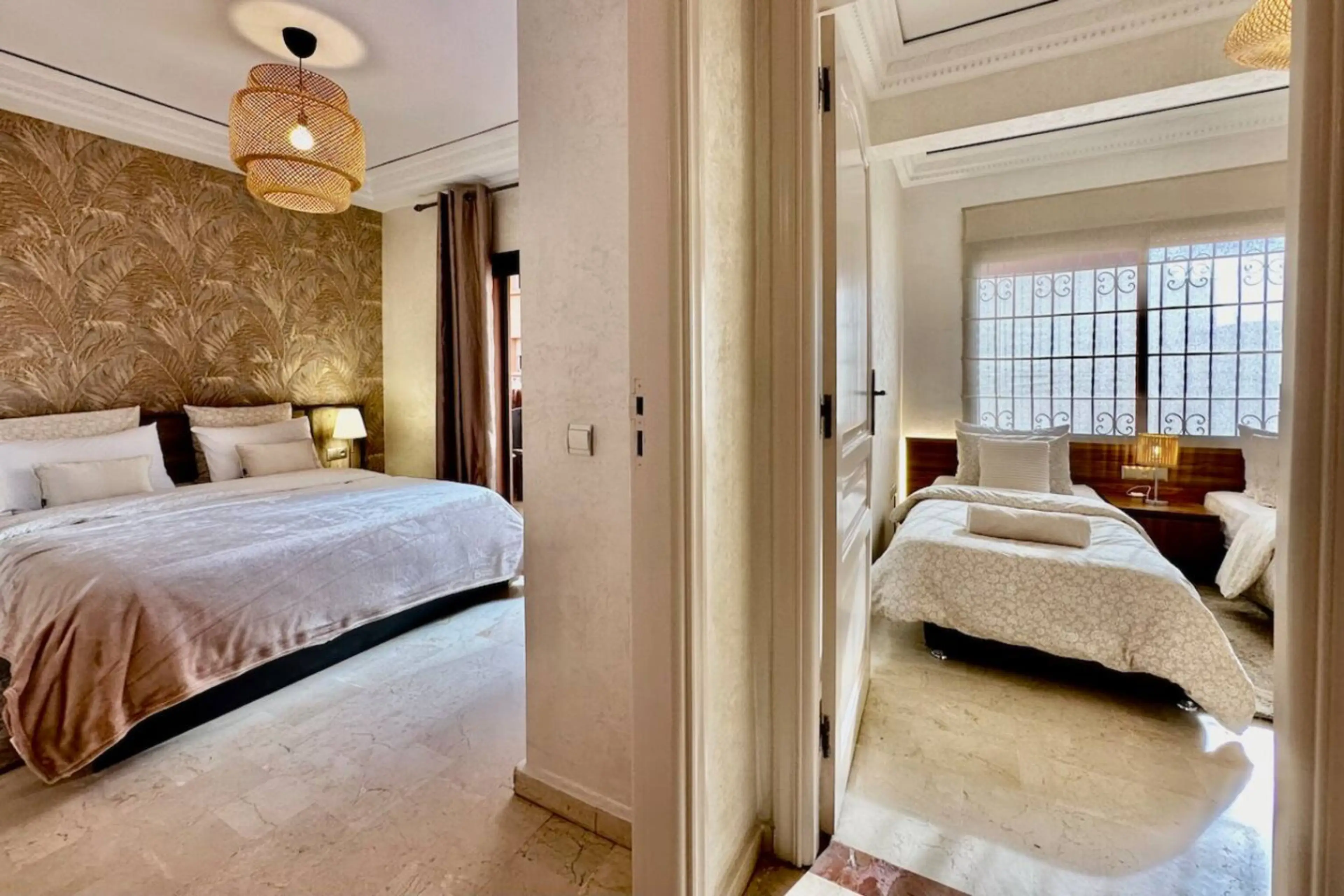 This newly renovated 2 bedroom apartment is located in the most prestigious area of central Marrakech - Hivernage, conveniantly located between the old town (Medina) and new town ( Gueliz) in the quiet residency with swimming pools. Once you leave the residency, you find yourself in the middle of th...