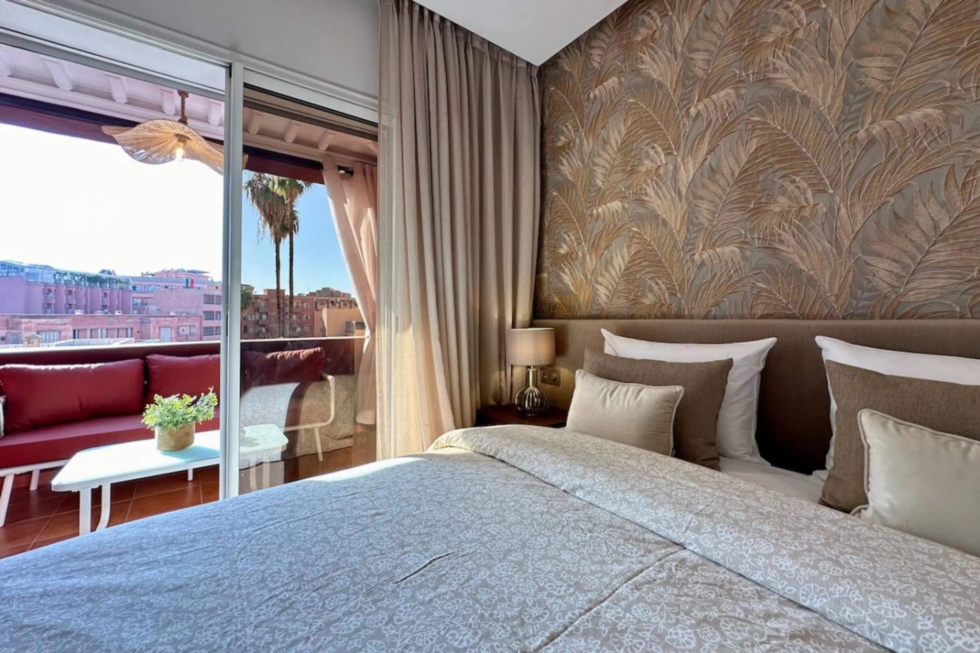 This beautiful, newly renovated home offers space, light and luxury comfort. Located in 24/7 secured residency with the swimming pool and underground parking and just a step away from most of interest points of Gueliz: art galleries, museums, bars and restaurants. Once you open the door to the apar...