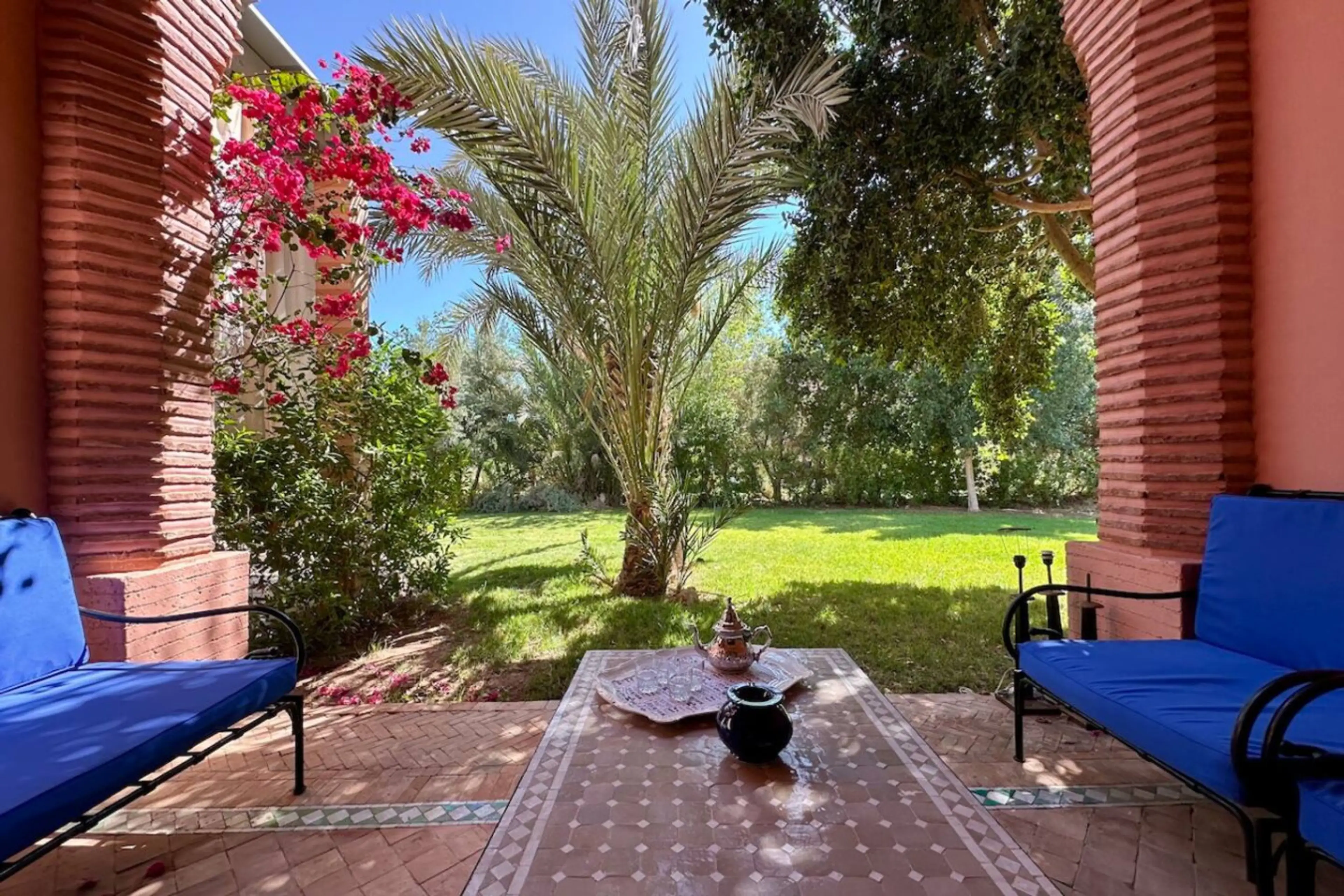 Spacious two bedroom apartment with several terraces and huge gardens in one of the best residences in Palmeraie with 24/7/365 security, hectares of communal grounds with several swimming pools, lake and kids play ground. Apartment is spacious and airy, huge living space with plenty of seating, din...